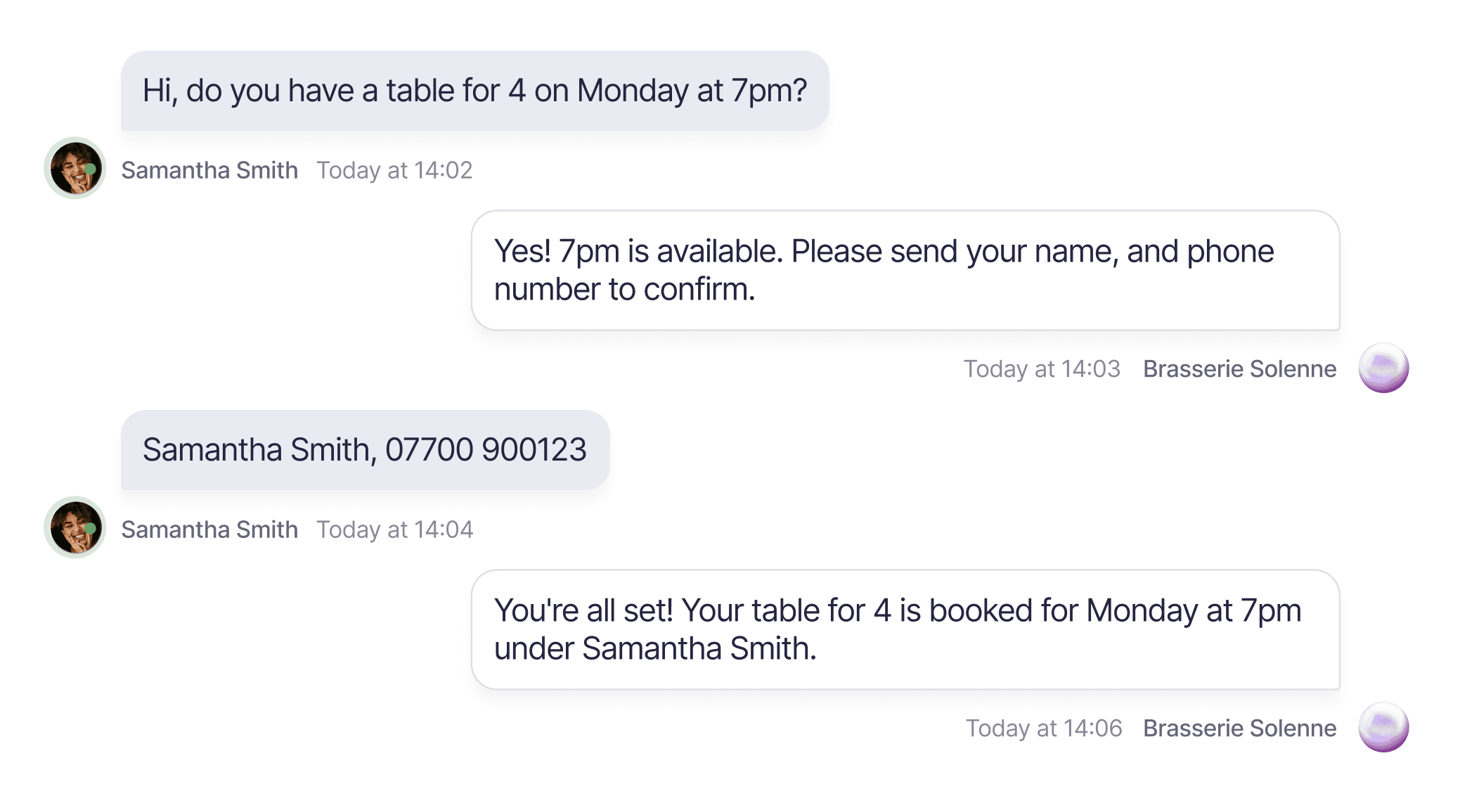 Jonna handles routine enquiries end to end - checking live availability, replying in your restaurant's voice, confirming bookings automatically.